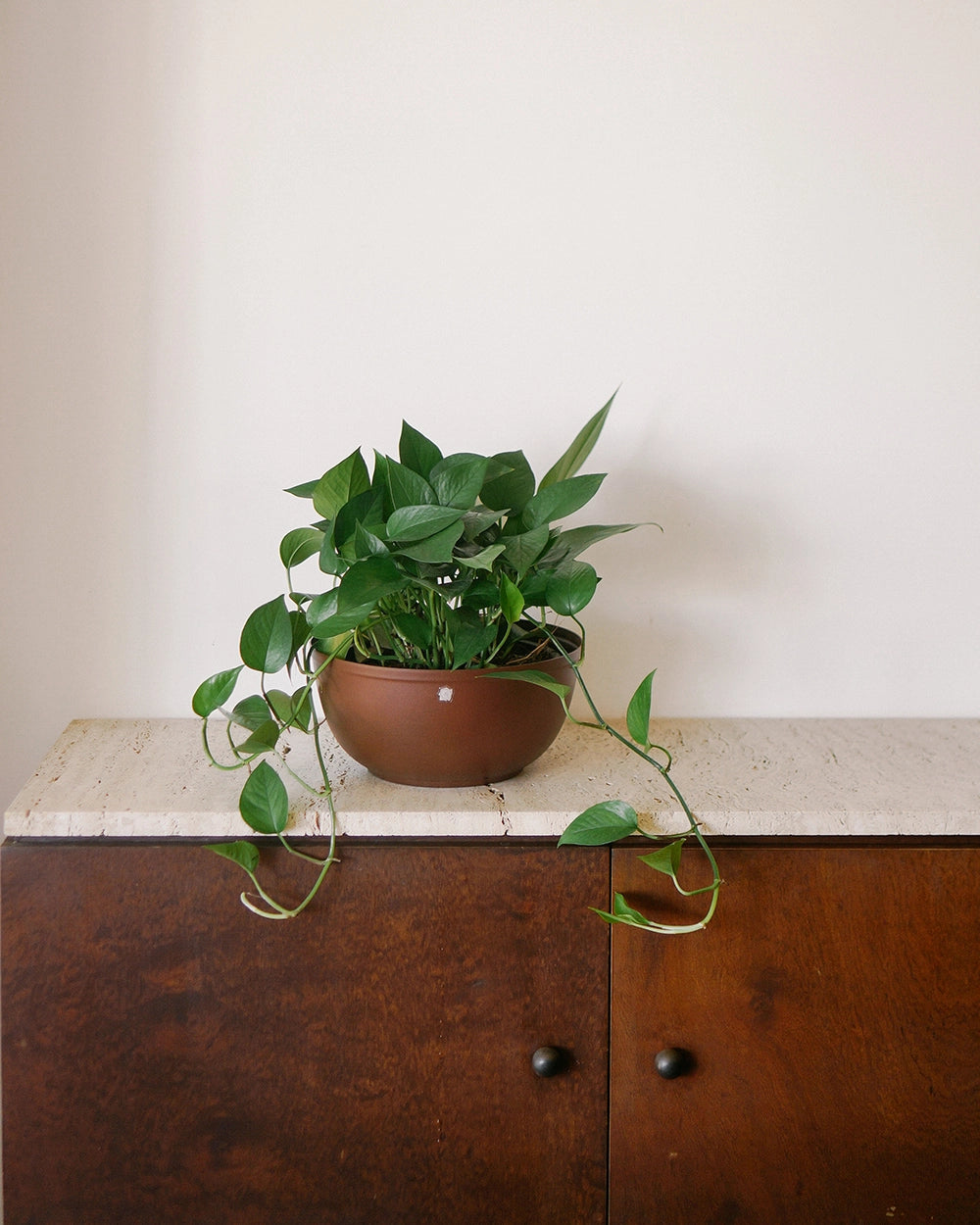 Seu desenho limpo e bem acabado veste o pote de plástico da planta, segurando o excesso de água das regas sem deixar passar umidade para a superfície em que está apoiado.