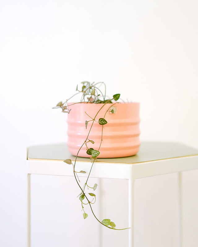 Nossas plantas são entregues em potes de plástico. Os cachepots e jardineiras podem ser adquiridos à parte. Neste caso, o pote plástico será adaptado para o tamanho de melhor encaixe do conjunto.