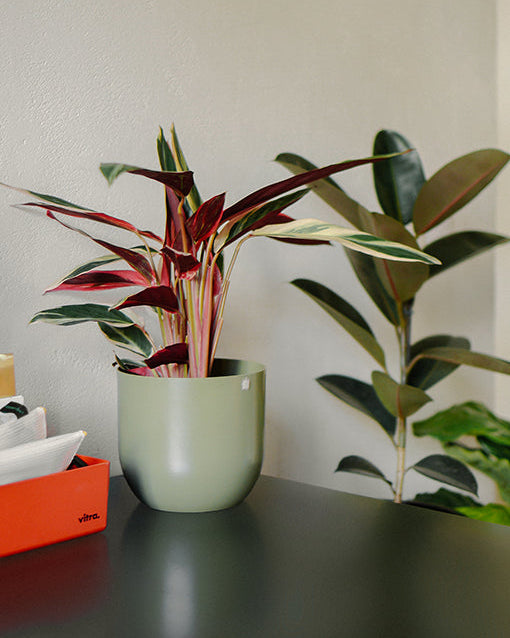 Nossas plantas são entregues em potes de plástico. Os cachepots e jardineiras podem ser adquiridos à parte. Neste caso, o pote plástico será adaptado para o tamanho de melhor encaixe do conjunto.